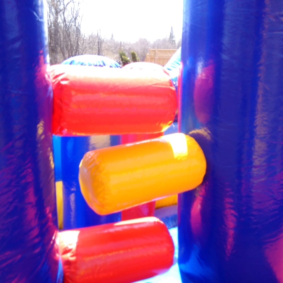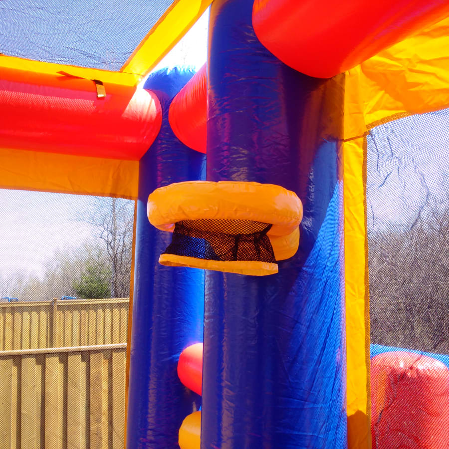 With this Castle 7 in 1 Combo Bouncer kids can have an amazing day! This Castle Combo offers up to seven different activities for endless hours of activity. It has a large interior jumping area with basketball hoop for group interaction, vertical and horizontal obstacles, climber and a large slide. Plus has high-visibility mesh that allows spectators to keep an eye on the kiddies. Great for any birthday party or event, and is guarantied to be the life of the party!