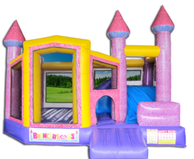 Start your party off with a New Dazzling 3 in 1 Combo for your princess' party. Recommended for ages 1-8 years. Perfect with any girls theme party! Bounce around, Climb and Slide with some girly style!