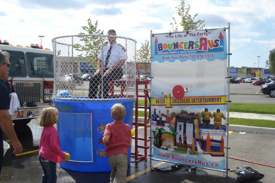 The Bouncers Are Us Dunk Tank is the only one in the area. Dunk tanks have been delighting crowds for years. The concept of dunking the boss at the company picnic, dunking the local "celebrity" at fundraiser events, or dunking friends and family at birthdays and family reunions has become a Canadian pastime. Our dunk tank holds 500 gallons of water and is equipped with a window to watch your dunked victim under water. This is the best and newest designed dunk tank in the area. Have a laugh and let us deliver the fun to you, call for details.