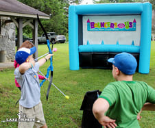 The interactive Archery Range Game is an extremely fun activity, perfect for of all ages. The archery target has 4 balls hovering, and you have to knock them down by hitting them with the arrow. This is a safe and fun game included are 2 bows, 8 arrows, and 12 balls.