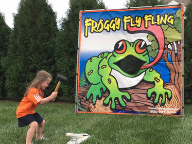The Froggy Fly Fling frame game lets the player test his or her skill by catapulting insects into Froggy's mouth. Kids love it. Froggy Fly Fling can be set up in less than five minutes and can be used indoors or out.