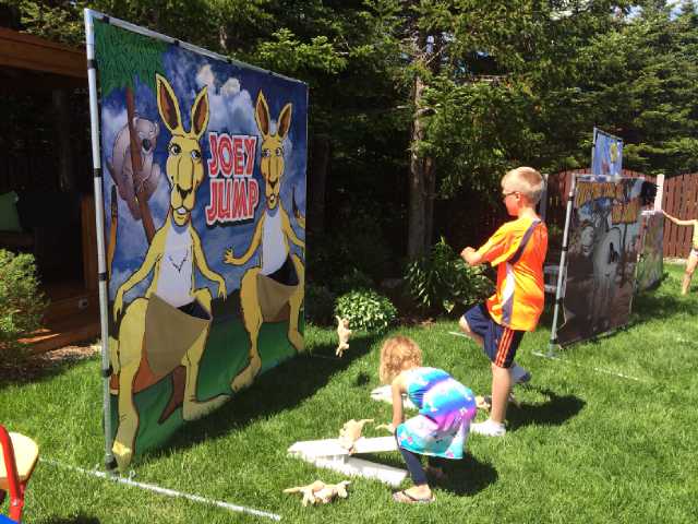 Building off the recent kangaroo craze, we've created a really cool frame game, called Joey Jump. The children stomp on the launcher, flinging the cuddly joeys into the mama kangaroo's pouch. Kids love it! Joey Jump can be set up in less than five minutes and can be used indoors or out.
