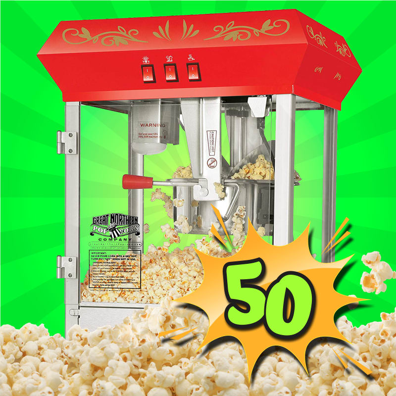Theater-Quality Popcorn Machine + 50 Servings of popcorn and bags