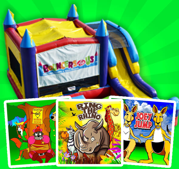 Choose 1 of 12 Bouncers with Slides and 1 of 6 Games for an interactive party!